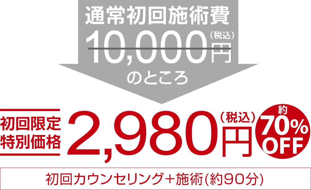 ※本当に改善したい方のみ 1日1名様限定!以降のご予約は通常初回料金である10,000円(税込)を頂戴致します。