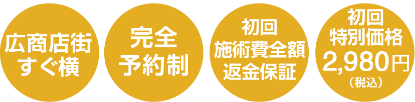 初回の施術で効果を実感できなければ、施術費を全額返金します。